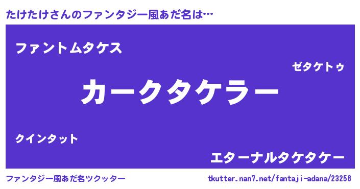 | ヒーロー風カッコイイあだ名 | 『幻影騎士タケ』『ウルトラたけたけマン』 |