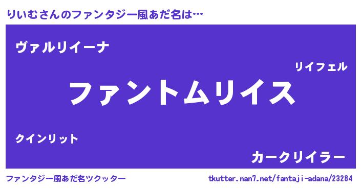 | 男性向けラノベタイトル風あだ名 | 『りいむの嫁は女の子じゃないと思った?』 |