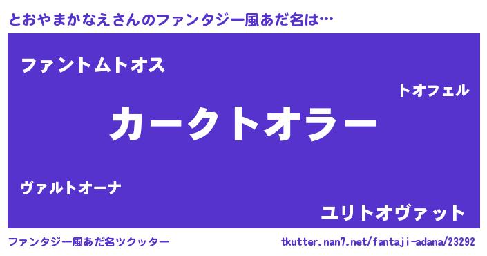 | 欧米人風あだ名 | 『とおやまかなえ・ステッグマイヤー』 |