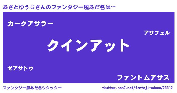 | 男性向けラノベタイトル風あだ名 | 『ノーゲーム・ノーアサトユウジ』 |