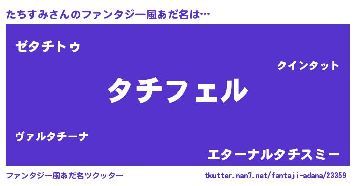 | 男性向けラノベタイトル風あだ名 | 『たちすみの憂鬱』『魔弾の王とたちすみ』 |