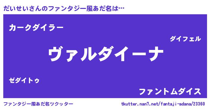 | 男性向けラノベタイトル風あだ名 | 『魔弾の王とだいせい』『だいせいの憂鬱』 |