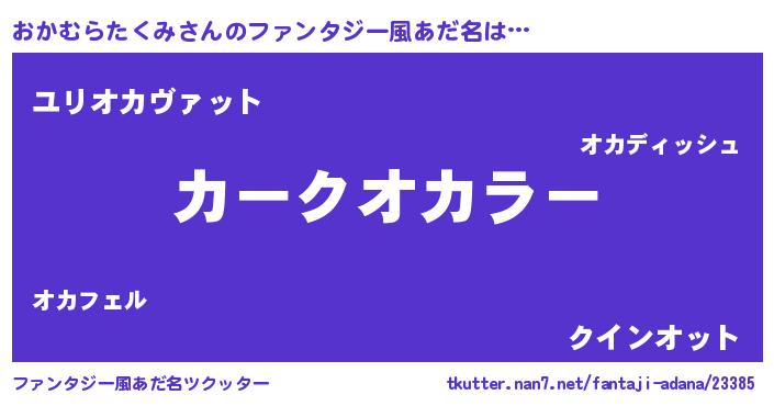| ヘコむあだ名 | 『おかむらたくみ(笑)』『おかにゅー』 |