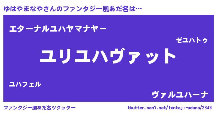 | 女子向けラノベタイトル風あだ名 | 『ゆはやまなやの玉の輿計画!』 |