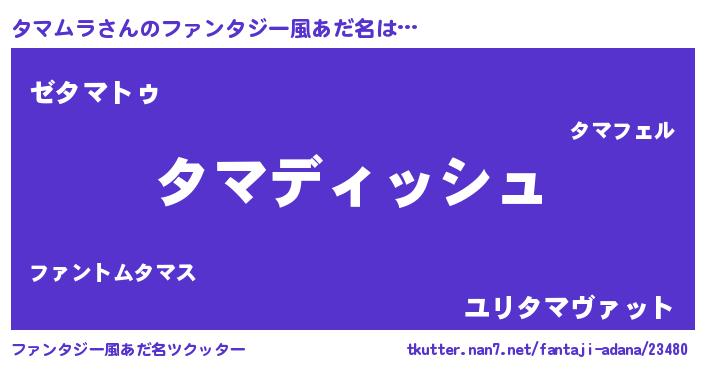 | 意味不明あだ名 | 『永久保存タマムラ』『自称タマムラ』 |