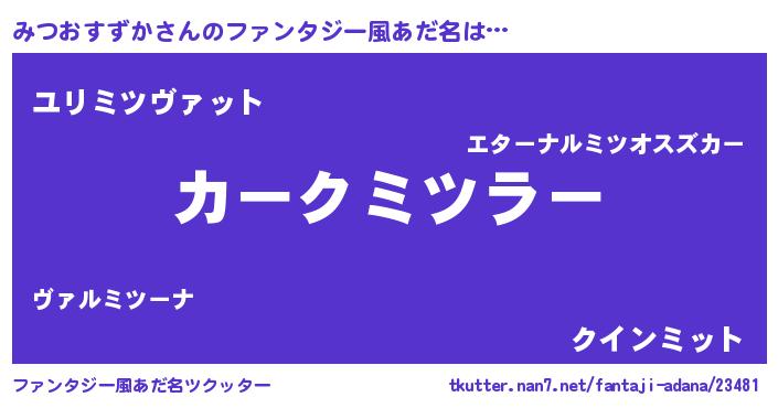 | 男性向けラノベタイトル風あだ名 | 『みつおすずかに滅ぼされるだけの簡単なお仕事です』 |