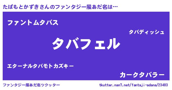 | 男性向けラノベタイトル風あだ名 | 『たばもとかずきに滅ぼされるだけの簡単なお仕事です』 |