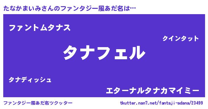 | ポケモン風あだ名 | 『タナチュウ』『ヒタナカマイミ』 |