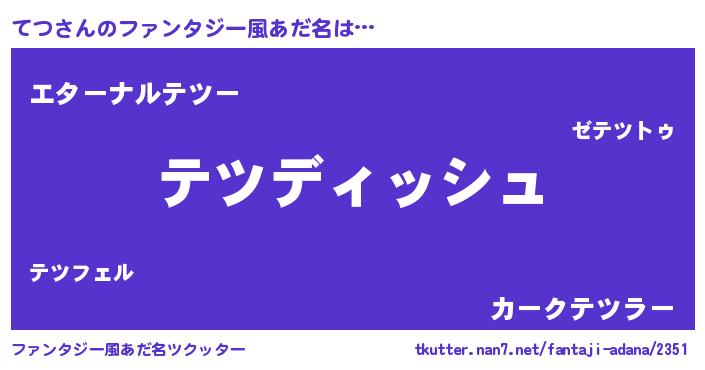 | 男性向けラノベタイトル風あだ名 | 『てつという概念が存在しない退屈な世界 』 |