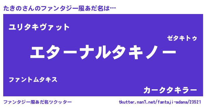 | ヒーロー風カッコイイあだ名 | 『ウルトラたきのマン』『最強戦士タキノ』 |