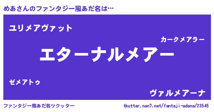 | ヒーロー風カッコイイあだ名 | 『ウルトラめあマン』『仮面メアダー』 |