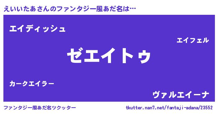 | 意味不明あだ名 | 『自称えいいたあ』『永久保存えいいたあ』 |