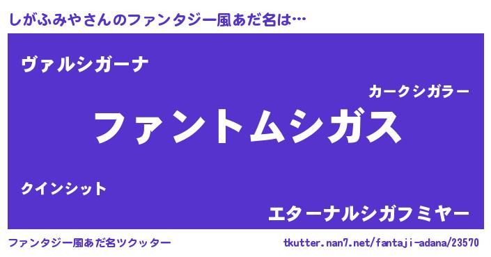 | 女子向けラノベタイトル風あだ名 | 『しがふみやの卵を拾いまして』 |