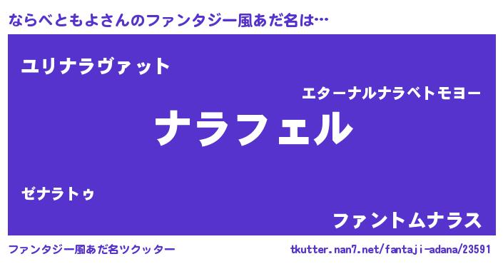 | ヒーロー風カッコイイあだ名 | 『スーパーナラベトモヨ』『銀牙騎士ナラ』 |