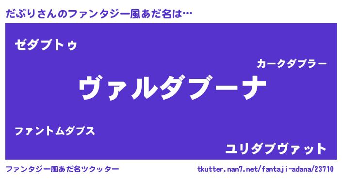 | 男性向けラノベタイトル風あだ名 | 『魔弾の王とだぶり』 |