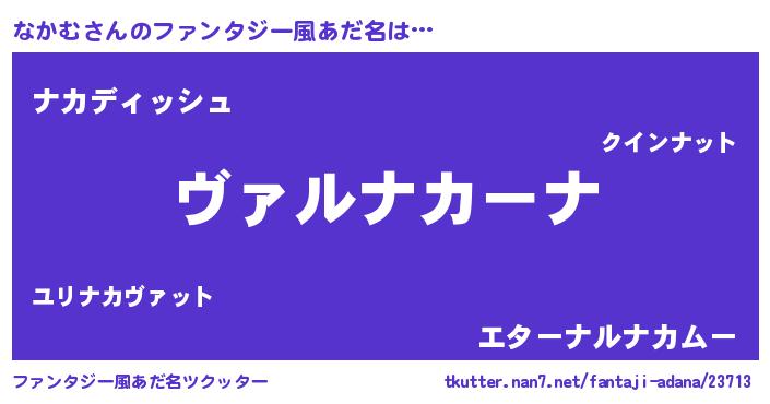 | 男性向けラノベタイトル風あだ名 | 『魔弾の王となかむ』 |