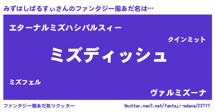 | 胡散臭い通販商品みたいなあだ名 | 『前代未聞の水素水…その名も「みずはしぱるすぃ」』 |