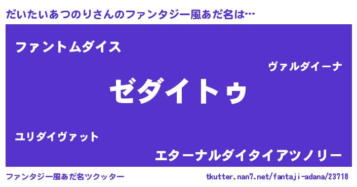 | 意味不明あだ名 | 『自称だいたいあつのり』 |