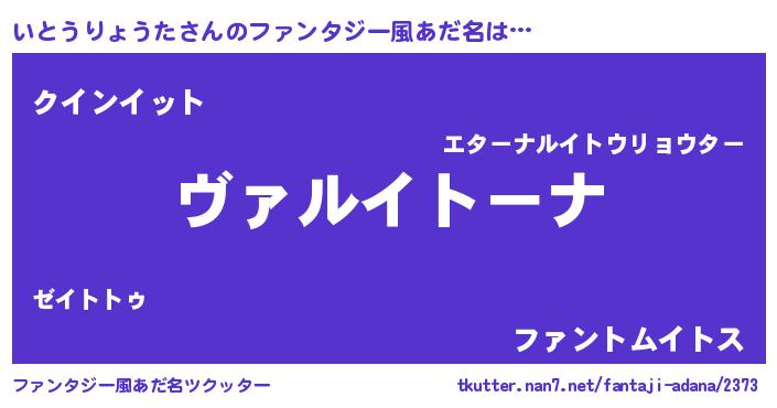 | 男性向けラノベタイトル風あだ名 | 『魔弾の王といとうりょうた』 |
