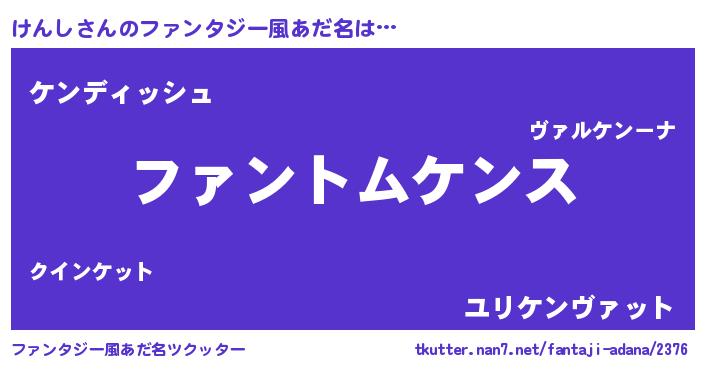 | ポケモン風あだ名 | 『ヒケンシ』『ゼニケン』『ケンゴンZ』 |
