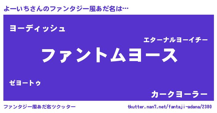 | 男性向けラノベタイトル風あだ名 | 『よーいちの嫁は女の子じゃないと思った?』 |