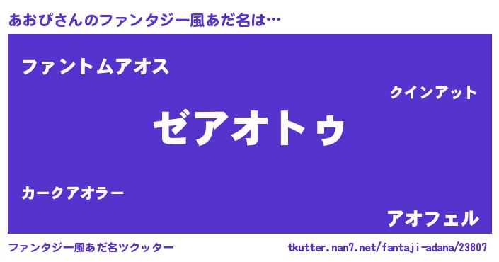 | 男性向けラノベタイトル風あだ名 | 『Re:あおぴから始める異世界生活』 |