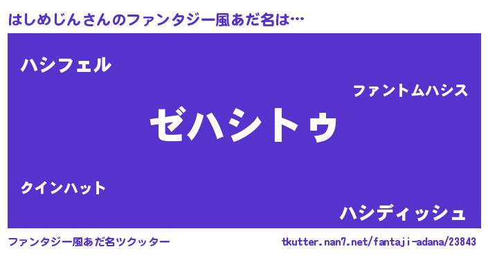 | 男性向けラノベタイトル風あだ名 | 『Re:はしめじんから始める異世界生活』 |