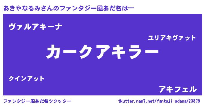 | 男性向けラノベタイトル風あだ名 | 『うちのあきやなるみが世界を掌握している!』 |
