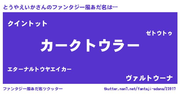 | 欧米人風あだ名 | 『とうやえいか・ステッグマイヤー』 |