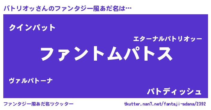 | 意味不明あだ名 | 『とにかく怪しいパトリオッ』 |