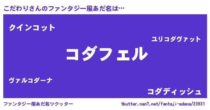 | 自動車の名前っぽいあだ名 | 『ランコダギーニ』『コダティマ』 |