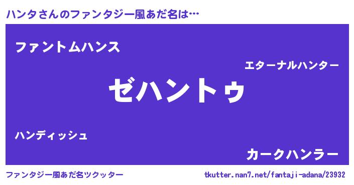 | 男性向けラノベタイトル風あだ名 | 『魔法科高校のハンタ』『緋弾のハンタ』 |