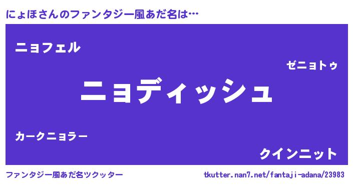 | 男性向けラノベタイトル風あだ名 | 『にょほという概念が存在しない退屈な世界 』 |