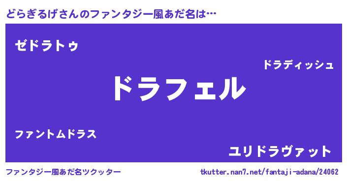 | 意味不明あだ名 | 『ペロリンどらぎるげ』『自称どらぎるげ』 |