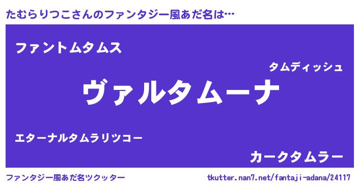 | 女子向けラノベタイトル風あだ名 | 『乙女ゲームの破滅フラグしかない悪役たむらりつこに転生してしまった…』 |