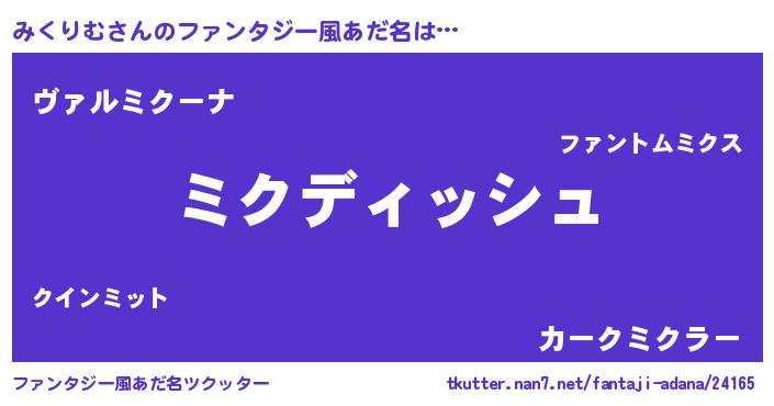 | 男性向けラノベタイトル風あだ名 | 『みくりむという概念が存在しない退屈な世界 』 |