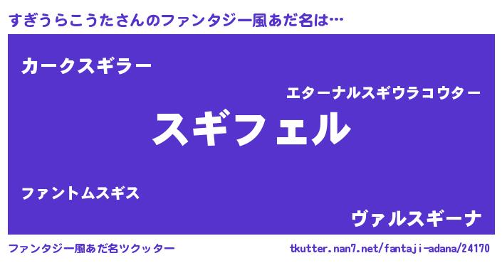 | ヒーロー風カッコイイあだ名 | 『スーパースギウラコウタ』 |