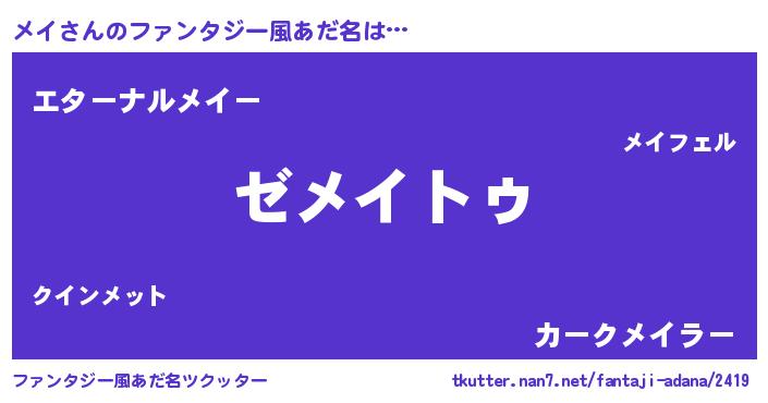 | 意味不明あだ名 | 『自称メイ』『メイフォーエバー』 |