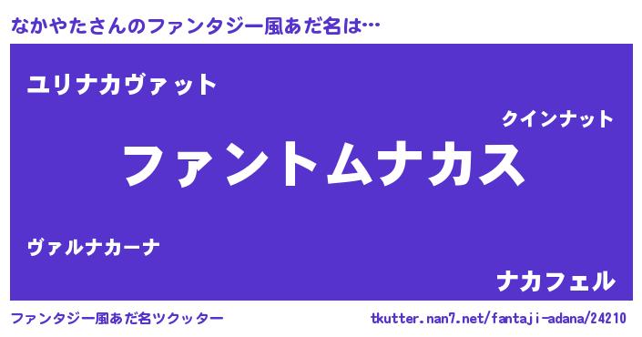 | 男性向けラノベタイトル風あだ名 | 『なかやたの嫁は女の子じゃないと思った?』 |