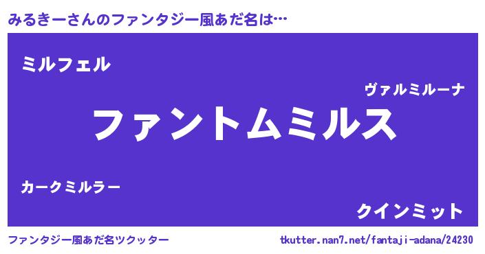 | 自動車の名前っぽいあだ名 | 『ミルトルパン』『プリミル』『ミンR』 |