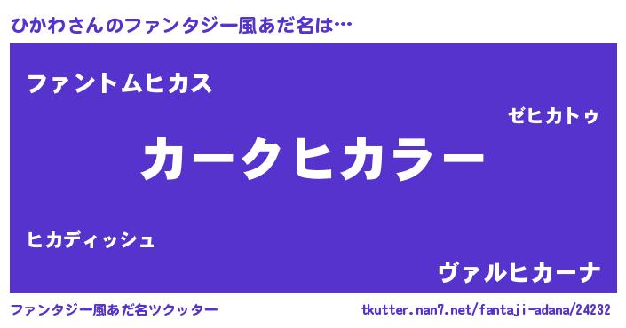 | 男性向けラノベタイトル風あだ名 | 『緋弾のヒカワ』『魔弾の王とひかわ』 |