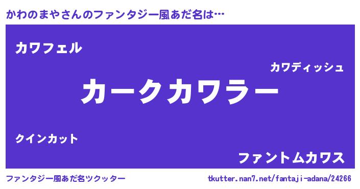 | ヒーロー風カッコイイあだ名 | 『スーパーカワノマヤ』『炎刃騎士カワ』 |