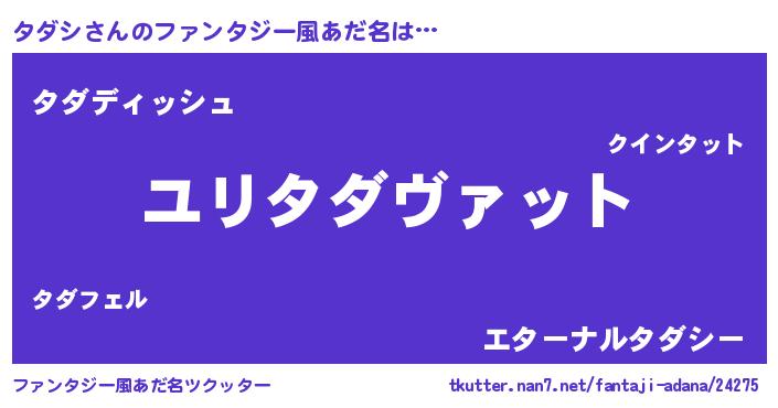 | 男性向けラノベタイトル風あだ名 | 『タダシスレイヤー』 |
