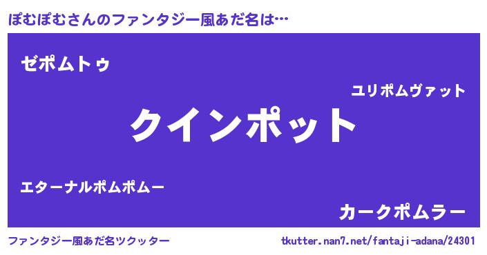 | 男性向けラノベタイトル風あだ名 | 『おまえをオタクにしてやるから、俺をぽむぽむにしてくれ! 』 |