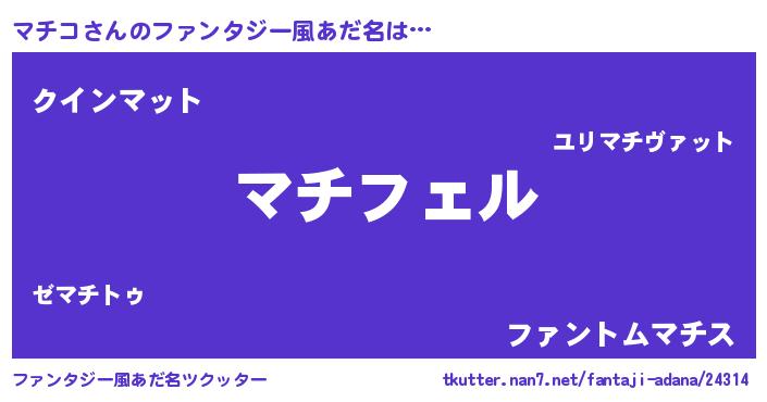 | 男性向けラノベタイトル風あだ名 | 『マチコの憂鬱』『魔法科高校のマチコ』 |