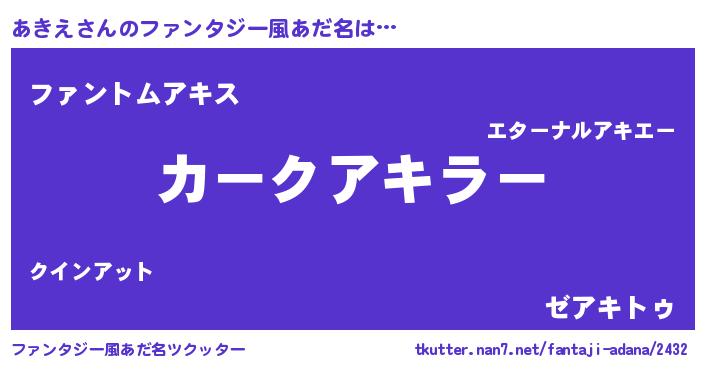 | ヒーロー風カッコイイあだ名 | 『銀牙騎士アキ』『超時空戦士アキエ』 |