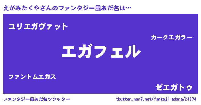 | 男性向けラノベタイトル風あだ名 | 『エガミタクヤアートオンライン』 |
