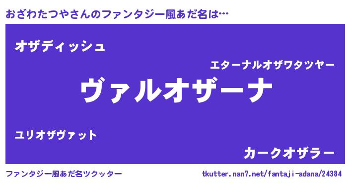 | 男性向けラノベタイトル風あだ名 | 『この素晴らしい世界におざわたつやを!』 |