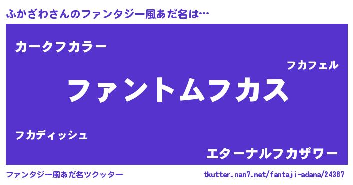 | ヒーロー風カッコイイあだ名 | 『炎刃騎士フカ』『ウルトラふかざわマン』 |