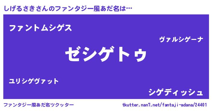 | 男性向けラノベタイトル風あだ名 | 『Re:しげるさきから始める異世界生活』 |